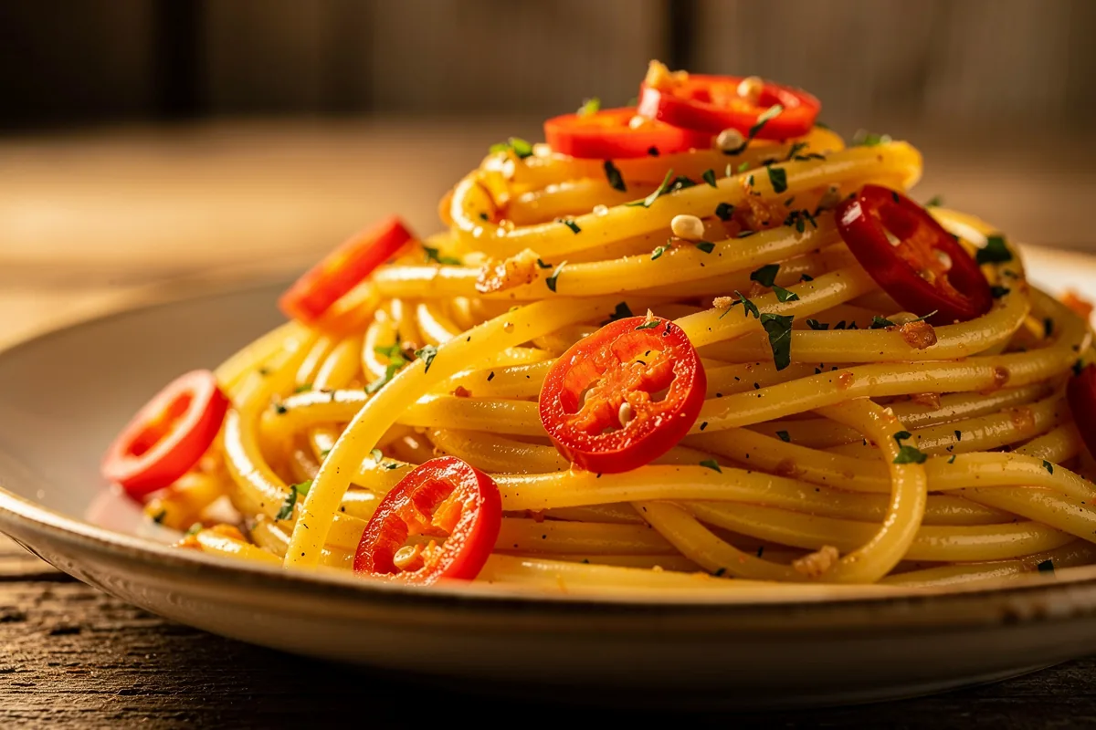 Basta mettere l’acqua sul fuoco e già l’aria cambia: il profumo dell’aglio che sfrigola nell’olio, il peperoncino che pizzica il naso, la pasta che aspetta solo di tuffarsi in pentola. È uno di quei piatti che sembrano “niente” e invece, se lo tratti bene, diventano una piccola lezione di cucina italiana.