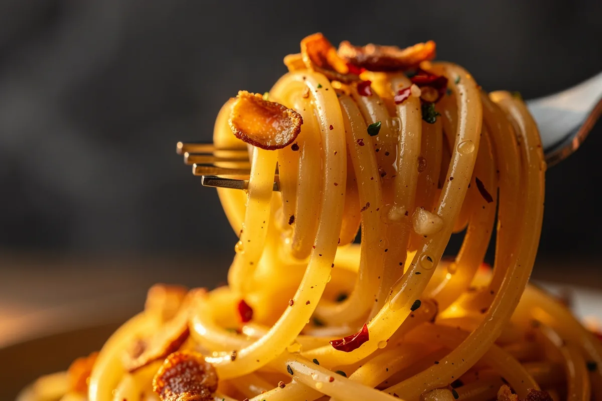 Un dettaglio spesso ignorato: dopo la mantecatura, lascia riposare gli spaghetti nel piatto 30–40 secondi prima di servire. Il condimento si assesta, la superficie si fa ancora più lucida e compatta, come al ristorante quando il piatto fa quei pochi metri dalla pass alla sala.